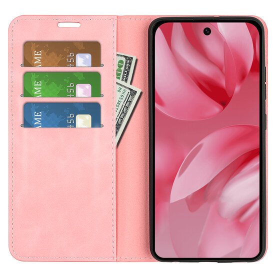 Google Pixel 10 / Google Pixel 10 Pro Hoesje - MobyDefend Luxe Wallet Bookcase (Magnetische Sluiting) - Roze
