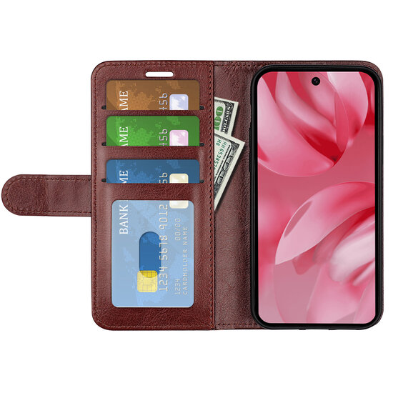 Google Pixel 10 / Google Pixel 10 Pro Hoesje - MobyDefend Wallet Book Case (Sluiting Achterkant) - Bruin