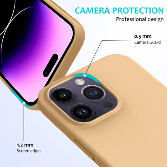 iPhone 14 Pro Hoesje - MobyDefend Matte Siliconen Backcover - Licht Oker