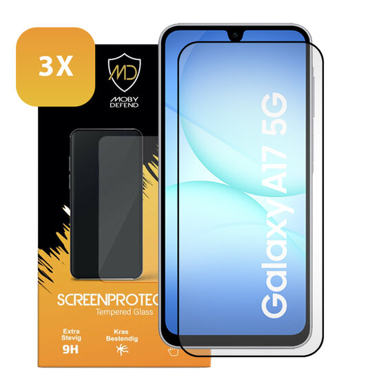 3-Pack Samsung Galaxy A17 Screenprotectors - MobyDefend Screensavers Met Zwarte Randen - Gehard Glas