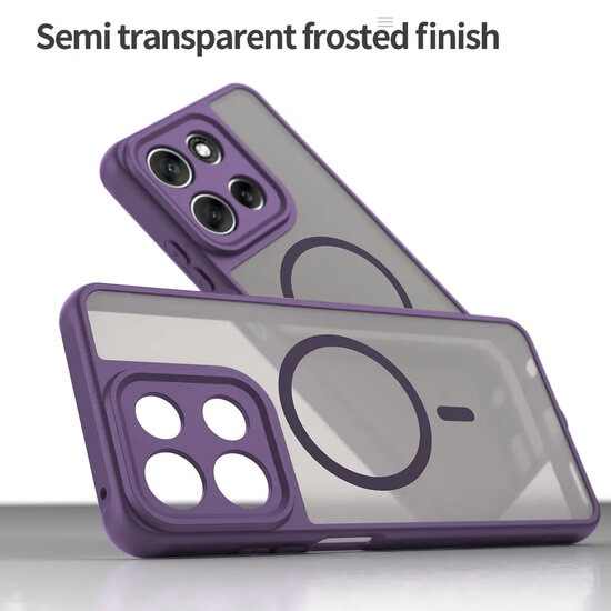 Motorola Moto G56 Hoesje - MobyDefend MagSafe Case Mat Transparant Met Gekleurde Rand - Paars